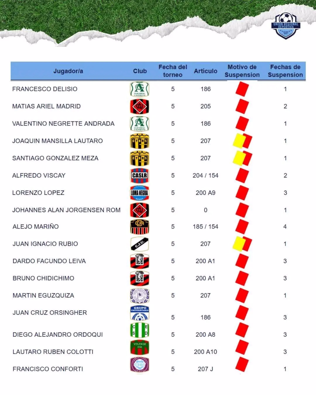 Se conocen los fallos del Tribunal de Penas de la Liga Tandilense para los Torneos de la Unión Regional Deportiva y los mismos son los que damos a conocer en forma siguiente.