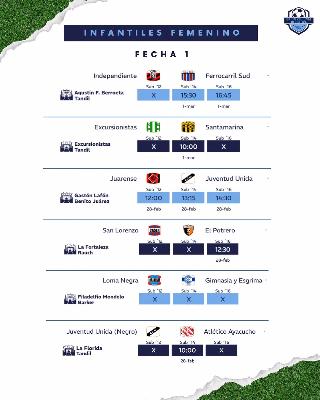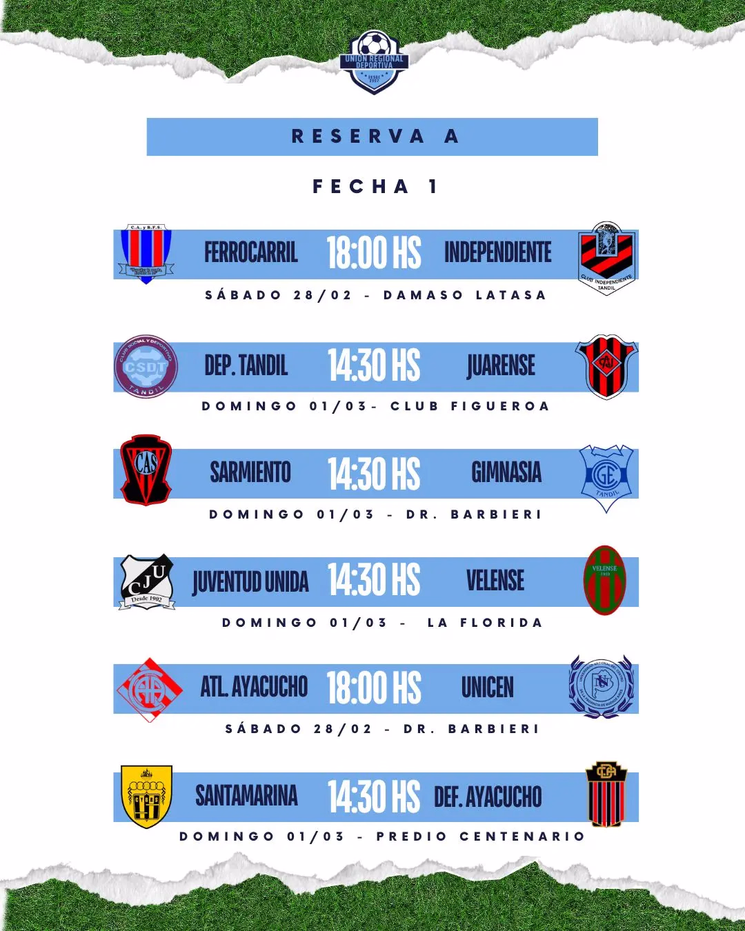 La Liga Tandilense de Fútbol ha dado a conocer la programación de la 1era fecha de todas las categorías de la Unión Regional Deportiva.