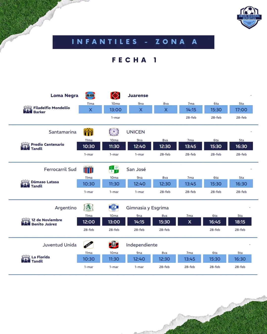 INFANTIL MENOR Y JUVENIL – ZONA A – FECHA 1